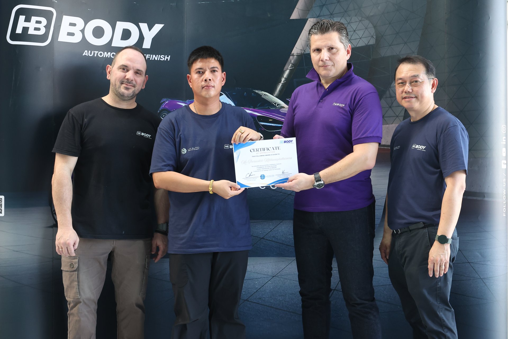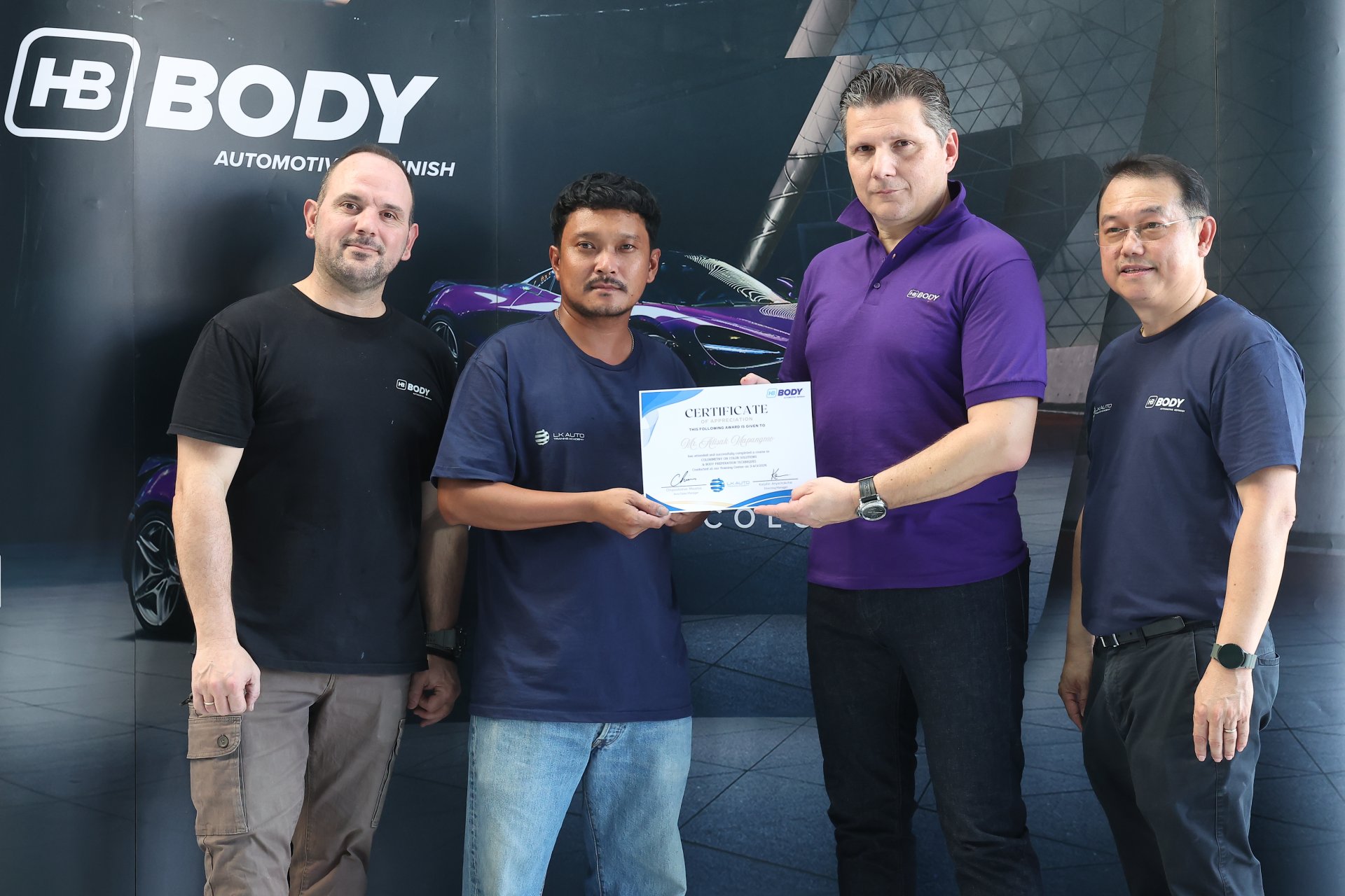 ขอขอบคุณ ทีมงานบริหาร และฝ่ายเทคนิค จากบริษัท HB BODY นำทีมอบรมผลิตภัณฑ์สีพ่นรถยนต์ @ L.K. Auto Training center Thailand #3 วันที่ 16 ต.ค. 2567