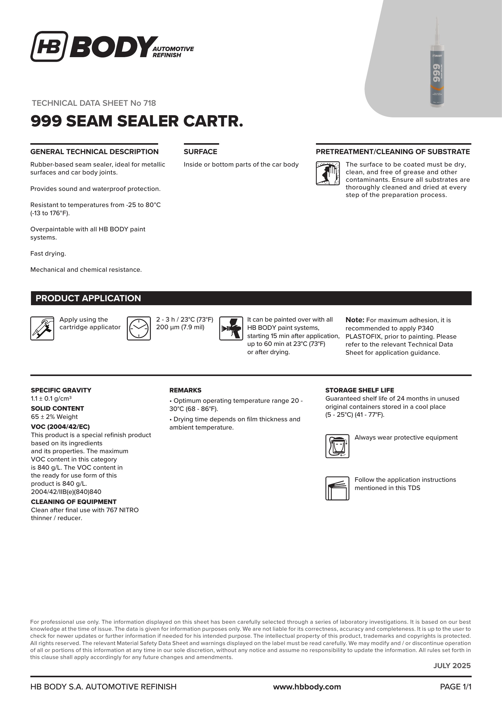 ยาแนวซินตะเข็บภายใน สูตรทินเนอร์ เหมาะสำหรับพื้นผิวโลหะและรอยต่อของตัวถังรถยนต์ ให้การป้องกันเสียงและกันน้ำ สามารถพ่นสีทับได้กับระบบสี HB BODY ทุกชนิด แห้งเร็ว ทนต่อแรงกลและสารเคมี